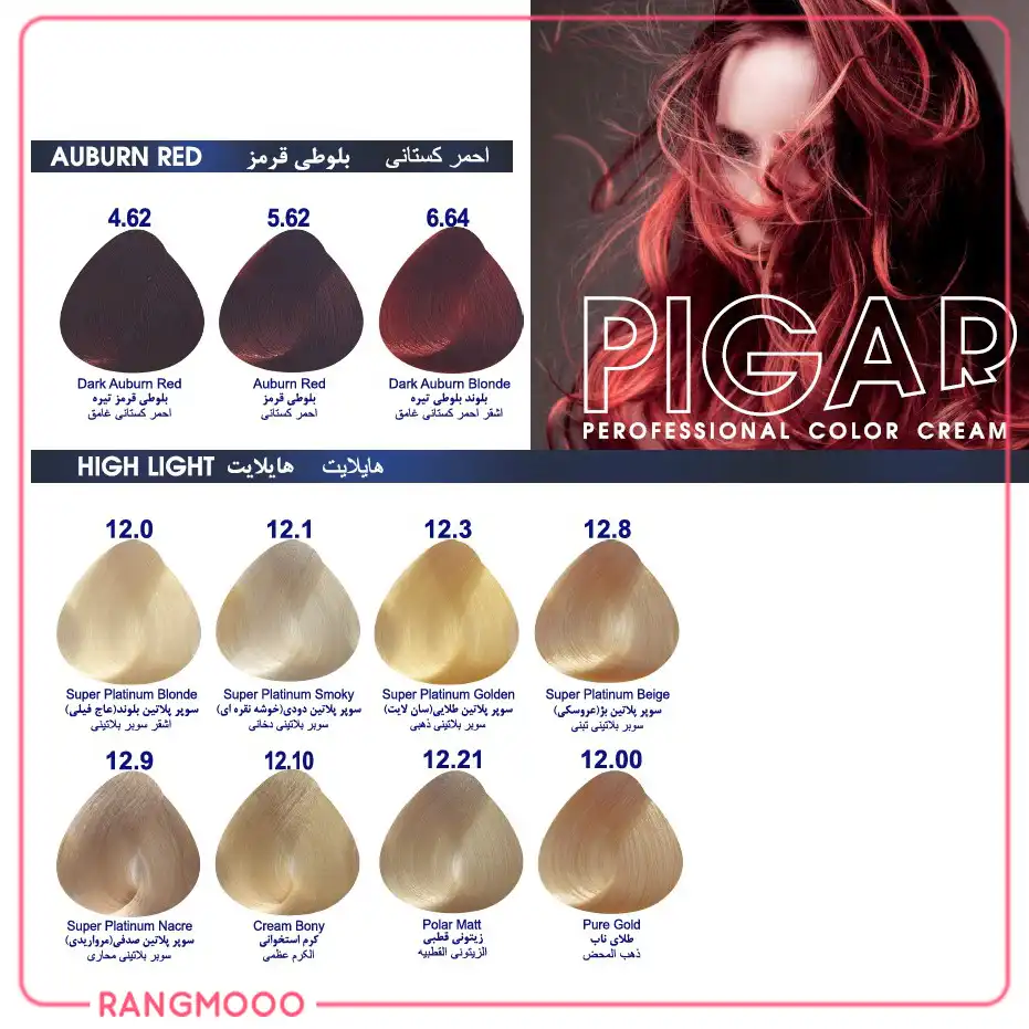 کاتالوگ رنگ موی پیگار | PIGAR